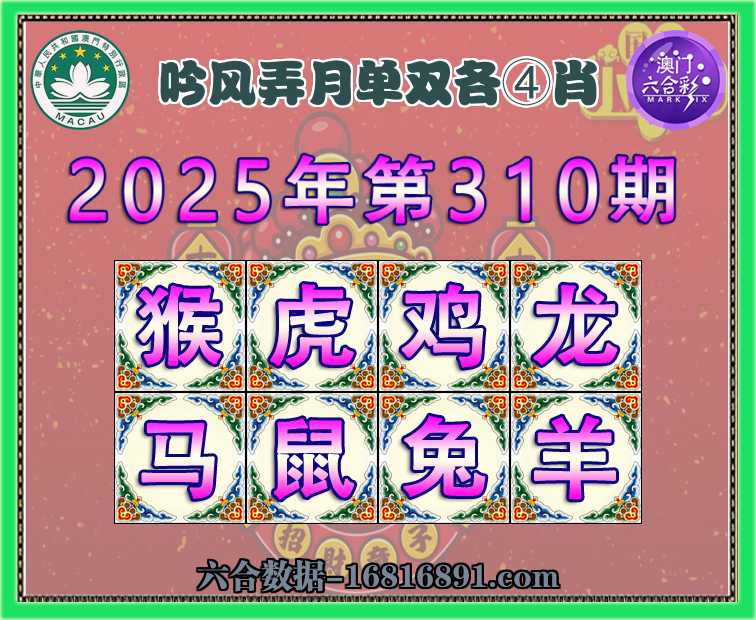 310期:【吟风弄月】 🐁单双各④肖🐁开:虎16准